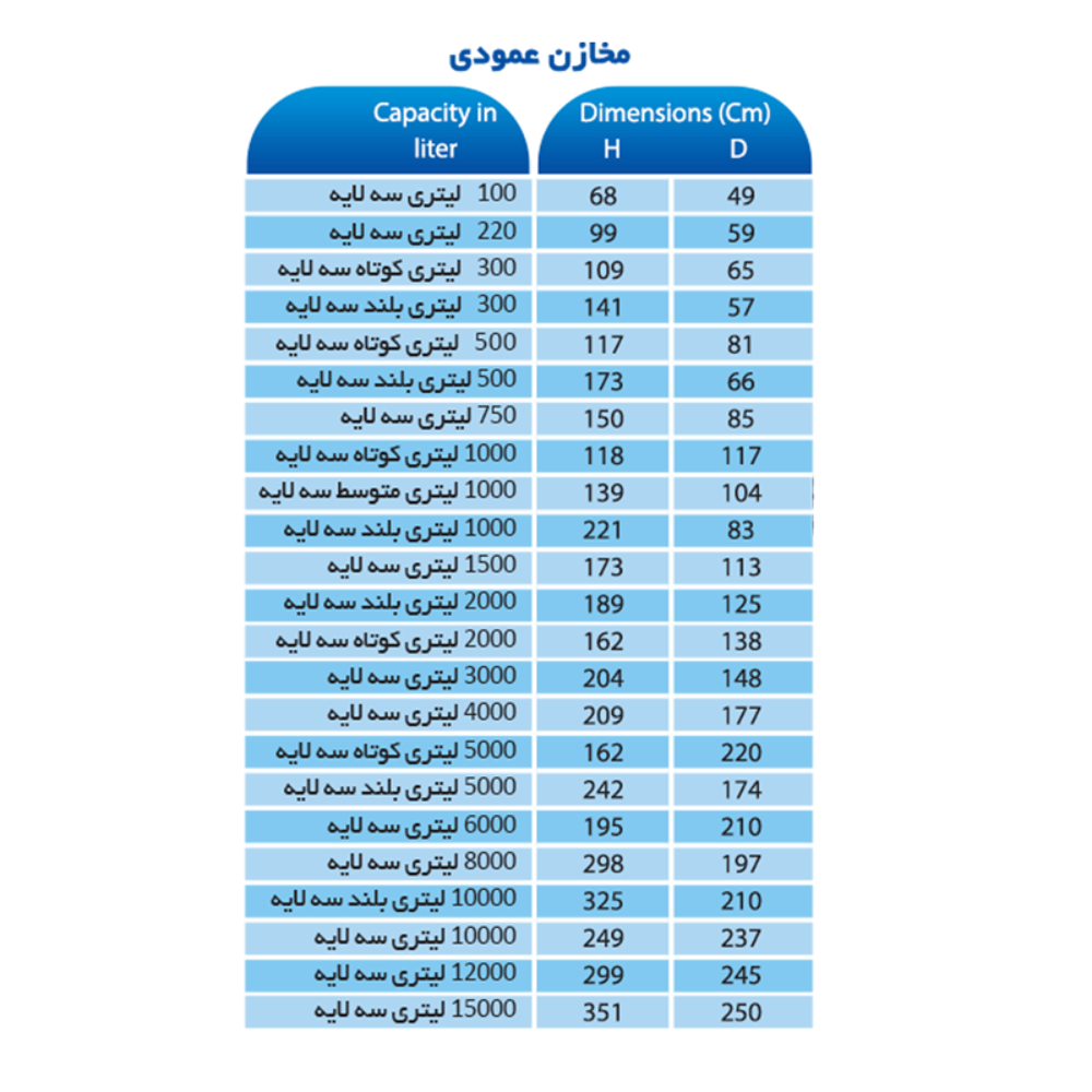 این مخزن برای نصب در فضای باز مناسب است زیرا نور خورشید نمیتواند به داخل بدنه نفوذ کند. khazarmanba.com+2torob.com+2 -